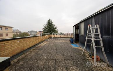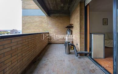 L'appartamento è composto da un'ampio e luminoso soggiorno dal quale si ha accesso al terrazzo di 15mq2 e una cucina abitabile con accesso ad un balcone di servizio.