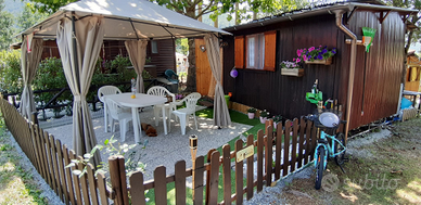 Splendida roulotte rimessa a nuovo internamente con annesso preingresso completamente ristrutturato . Il manufatto si trova presso il campeggio castello dei fieschi Montoggio Dotato di campo da calcio piscina bar ed altri confort . Per info chimate