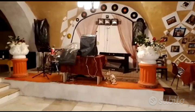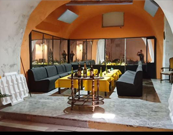 Sala di circa 300 m.q. allestita con tavoli sedie frigo impianto audio 2 privè. Max 70 persone.