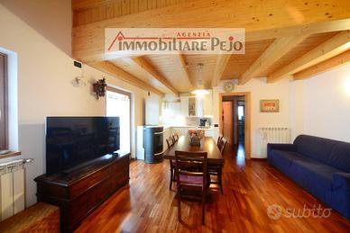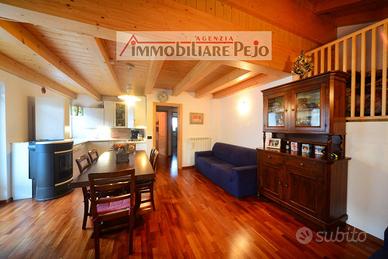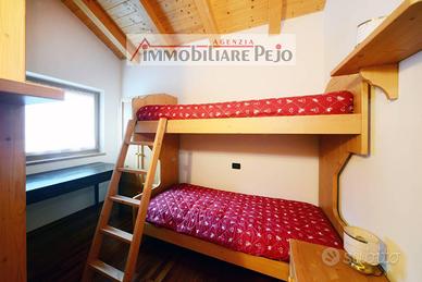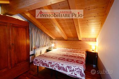 VENDUTO------- a Celentino, caratteristica frazione della Val di Peio, appartamento su due piani con doppi servizi in contesto unico nel suo genere, solleggiato e panoramico, in palazzina di recente costruzione. L'appartamento ha entrata indipendente al primo piano, ed è composto da ampio soggiorno con piccolo soppalco, angolo cottura, n. 1 camera con letto a castello, n. 1 camera con 3 letti, due bagni con doccia, ampio balcone panoramico sulla Val di Peio. Completa la proprietà box auto singolo. Termoautonomo con caldaia a gasolio e stufa a pellet. Da vedere!