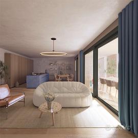 Ampio soggiorno - cucina open space di 50 mq, 3 ampie camere da letto, 2 bagni finestrati, generoso terrazzo abitabile e garage di oltre 47 mq al piano interrato.
