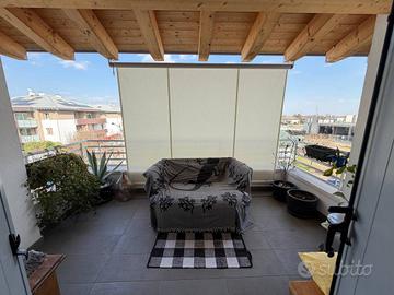 Rif:(127561084) - Se cerchi l'emozione di vivere sospeso tra cielo e terra, senza rinunciare al calore del legno, questo è il tuo prossimo rifugio. In un contesto signorile di recentissima costruzione, proponiamo un super attico unico nel suo genere, dove il fascino dei travi a vista incontra le più moderne tecnologie abitative in un'atmosfera di rara eleganza. * Una zona giorno open space inondata di luce, con una cucina a isola hi-tech pronta ad accogliere i tuoi momenti conviviali. * Vivere l'esterno tutto l'Anno: il vero gioiello è l'enorme terrazzo dotato di copertura bioclimatica: un giardino d'inverno da vivere anche sotto la pioggia o nei mesi più freddi. * Zona Notte: 3 ampie camere e 3 bagni finemente rifiniti, per la massima privacy di ogni membro della famiglia. * Spazio e Comodità: Oltre 40 mq di garage divisi in due box e una pratica cantina attrezzata a lavanderia. € 495.000 - Classe: B - IPE: 175.00 kWh/mq anno