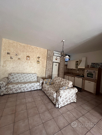 L'immobile e' composto da ingresso con zona coperta vivibile,internamente area spaziosa con 2 divani(uno letto),cucina con lavastoviglie,frigo, ecc...., comodo ripostiglio,infine bagno con doccia,