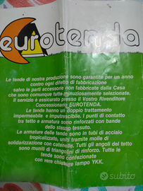 Vendo tenda camping 5 posti, con inserto per cucina interno, 2 camere separate con porte a cerniera, veranda all' ingresso. La tenda, made in Italy, dei primi anni 80, è stata utilizzata 2 volte, è in perfetto stato. Vendo per conto terzi, prezzo da concordare in quanto pezzo raro e vintage.