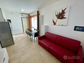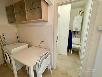 L'immobile si sviluppa su due piani: la zona giorno si apre su un soggiorno con angolo cottura, dal quale si accede a una camera da letto con balcone, a una zona lavanderia convertibile in cucinotto e a un bagno.
