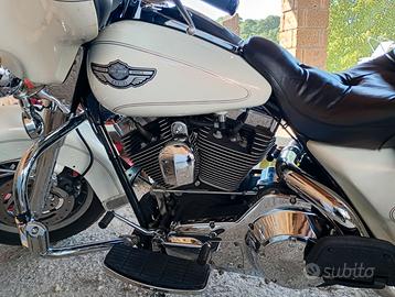 ELECTRA GLIDE ULTRA CLASSIC 2003 bianco perla, vari accessori : sgancio rapido tour pack con kit antenna, 2 ° sella badlander, ammortizzatori posteriori bitubo regolabili, effettuati vari lavori a KM 71.500: batteria originale . clunch muller, distribuzione feuling, camms andrews t 26, cuscinetti ruota ant, e post. , pasticche ante, post. , pneumatici ante, e post metlezer , cruisetec ,cuscinetti forcellone post. compresi di swirl dx e sx . vetrino batwind da 12 , cornice batwind cromata, collettori e marnitte bassani.