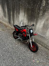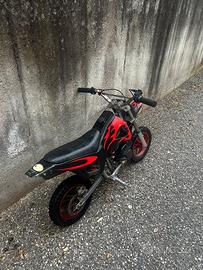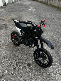 2 minicross 50cc miscela 2 tempi funzionanti La minimoto cross nera e nuova ha 2 ore di utilizzo ha ancora i peletti sulle gomme. Monta: Gas rapido Ammortizzatore centrale regolabile Filtro carburatore a cono racing Cerchi da 10” Easy start Paracolpi maggiorato Paracatena Scarico centrale racing Sistema di spegniemnto in caso di caduta. Laltra minimoto con le fiamme rosse funziona ma ci sarebbe da cambiare la corda d’accensione )che costa 10 euro nuova) riesco comunque a farla partire cosi. Monta: Cerchi da 6” Scarico centrale racing Filtro racing Gomme all 85% Vendo in blocco no perditempo non scambio