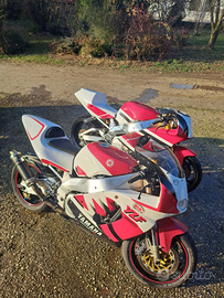 VENDO SOLO IN BLOCCO, per abbandono progetto, due yamaha yzf 750r da completare.. ferme da circa 3 anni.. una con telaio radiato da fare uso pista ed una con telaio immatricolato '94 da ripristinare originale.. fornisco tutti i pezzi ( ed anche di più es. Altri cerchi, forcella, mono, pedane, fari.. )