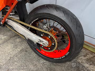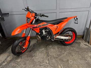 Vendo ktm sx 250 2025 motard, moto con 52 ore totali, immatricolada vm racing con omologazione motard, enduro, cross e per il trasporto di due persone. Il prezzo è riferito alla moto senza impianto frenante radiale (aggiungibile con 900?). Monta cerchi faba 17 bicolor (non adesivo ) e gomme nuove pirelli rosso IV, blocchetto chiavi, portatarga regolabile e faro led. No perditempo o sognatori, no scambi.