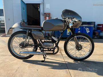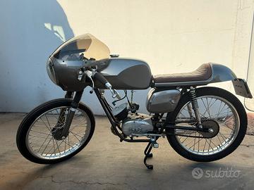 Vendesi ciclomotore Artigianale Café Racer su base Demm America • Base: Telaio Demm America modificato e adattato allo stile café racer. • Motore: Morini monocilindrico a 2 tempi, revisionato. • Design: Linee pulite ed essenziali, cupolino rotondo con faro integrato, sella monoposto, manubrio basso in stile corsa • Componentistica: Serbatoio personalizzato, specchietti bar-end, cerchi a raggi, pneumatici vintage. • Verniciatura: Vernice grigio canna di fucile Moto Guzzi con alcuni dettagli cromati. • Documenti: libretto originale e libretto nuovo Perfetta per gli amanti delle moto personalizzate e come complemento d’arredo.