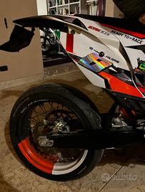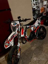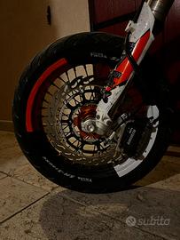 Da come si puo vedere vendo ktm 125 six days 2015 tenuto in ottime condizioni. La moto monta: - kit motard VM Racing - pancia hgs (35 h) - terminale bud racing full carbon (35 h) - faro led by vm racing - plastiche bianche con grafiche personalizzate - cerchi faba by vm racing e gomme Dunlop - impiante frenante by vm racing completo ( disco 320, pompa 16X18 ) - cerchi bicolor by bold. - carter frizione traparente by vm racing - portatarga pieghevole by vm racing - frecce microled by movetronix - kit extra di plastiche nere/arancio originali - cerchi con gomme enduro La moto è targata e possiede la tripla omologazione. Per info non esitate a scrivere (prezzo leggermente trattabile)