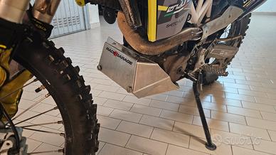 Vendo Husqvarna 701 enduro modello 2016, immatricolata 04/2017 con 24.000 km Monta i seguenti accessori: Torretta rally Radegarage F5 in fibra di carbonio con fari a led omologati uso stradale. Vasca porta oggetti da 6 litri Radegarage installata al posto della cassa filtro originale e filtro aria in spugna lavabile. Paramotore in alluminio con portaoggetti da 4,5 litri Radegarage (ci metto gli attrezzi ed i ricambi per avere il peso in basso) + secondo paramotore in alluminio semplice. Display Cumpan Berotec (display che mostra rpm, temp olio, temp ambiente e marcia inserita). Leva freno posteriore rinforzata. Scarico Arrow. Paramani chiusi Barkbusters con anima in alluminio, con calotte sia nere che gialle. Carene colore nero/giallo Vari altri accessori montati e ricambi inclusi (4 leve, filtro aria, etc..). Di quello che si vede in foto, escluso la pulsantiera Joymap ed il borsello Enduristan. Conservo le carene originali e lo scarico originale, così come tutti i pezzi originali sostituiti o smontati. Pneumatici Mitas Terraforce al 50% con camere 4mm Michelin appena montate. Lavori fatti nell'ultimo anno: sostituzione albero a camme, bilancieri e cuscinetti ad Agosto 2025; frizione nuova (ricambi originali KTM, comprese le molle), olio e filtri olio, catena, candele, 100 km fa...; revisione completa e taratura forcella e mono presso Officina GRG ad Imola appena eseguita. Moto spettacolare! Vendo per passaggio a 250.
