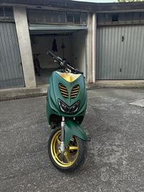 Vendo Yamaha Aerox 50 in ottime condizioni. Cilindrata: 49 cc Marmitta Gianelli Extra omologata Cavalletto ONE Porta targa ONE Rialzo ammortizzatore ONE Specchietto laterale a manubrio Allestimento naked Fornisco doppio set di carene: Nero Verde (come in foto) Disponibile anche manubrio originale. Scooter tenuto bene, pronto all’uso.Perfetto per chi cerca un mezzo già sistemato e con un bel look