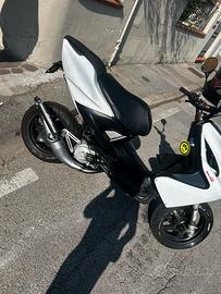Come dall' titolo dell'annuncio vendo un fantastico aerox in buone condizioni, presenta solo qualche graffietto sulle carene ma nulla di esaterato. È un 50 originale con piccole modifiche. Modifiche fatte: -Multivar 2000 -campana malossi -frizione malossi fly -marmitta extra giannelli Estetica: -Gas rapido domino -manopole domino -specchietto pieghevole -manubrio naked presenta anche le freccie anteriori che non pero non sono funzuonanti. Ci sono due piccoli problemi: la marmitta presenta l’omologazione ma non è inserita nel libretto di circolazione e il secondo è che ha la revisione scaduta da un anno ed è da rifare, da quel momento è stato inutilizzato.