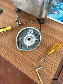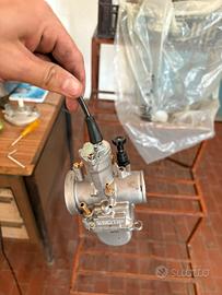 vendo aerox 50 top tpr 86 compreso di carburatore 21 PWK con acceletatore compreso, tutti i carter completi come nuovi barenati adatti per tpr 86 vendo anche freni brembo posteriore e anteriore vendo tutto telaio completo come nuovo tutto nero con ammortizzatori paioli in carbonio con ruote comprese vendo tutta elettronica anche centrali fari e tutte le carene che sono completamente nuove e nere vendo anche serbatoio quindi ricapitolando vendo Gruppo termico TPR 86 Cilindro Testa Pistone Fascia elastica Spinotto Seeger Guarnizioni cilindro Albero motore corsa 44 Biella Gabbia a rulli Cuscinetti banco Paraoli Carter motore Carter trasmissione Guarnizioni carter Prigionieri Bulloneria Carburatore Collettore aspirazione Pacco lamellare Lamelle Filtro aria Tubo aspirazione Rubinetto benzina Tubi benzina Filtro benzina Accensione Statore Volano Centralina Bobina Candela Pipetta candela Cablaggio Marmitta Espansione Collettore scarico Silenziatore Molle scarico Correttori di coppia Mozzo Frizione Campana frizione Molle frizione Molla contrasto Rapporti primari Rapporti secondari Ingranaggi trasmissione Pompa acqua Radiatore Ventola Tubi acqua Liquido refrigerante Pedivella accensione Ingranaggi avviamento Olio miscela Pompa olio (se presente) Tappo serbatoio Telaio Forcella Ammortizzatore Cerchi Gomme Dischi freno Pinze freno Pastiglie Pompa freno Leve Manubrio Comandi gas Cavi acceleratore Cavi freno Cavi aria Serbatoio benzina Sella Carene Parafango Strumentazione Contachilometri Contagiri Sensore temperatura sicuramente avro dimenticato qualcosa quindi per qualsiasi cosa scrivetemi e in piu se volete tutto il motorino assemblato sono disponibile per assemblarvelo o fare altri lavori prezzo ovviamente da stabilire