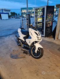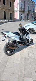 vendo aerox 70cc top nero con: marmitta giannetti shot v4 o rost, variatore malossi multivar frizione e campana stage6 regolabile e ventilata carburatore 21, filtro malossi, rapporti malossi a denti dritti, copri rapporti della tpr rosso, pastiglie nuove avanti e dietro, schermo stage 6, pompa dell acqua maggiorata con liqido nuovo, rulli malossi e insieme allo scooter do un altro kit di carene (bianco), pezzi originali, in più rulli e mollette della frizione, gas rapido. (lo scooter non ha bisogno di nessun lavoro) PREZZO NON TRATTABILE