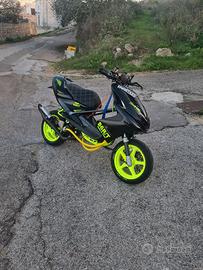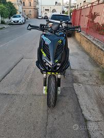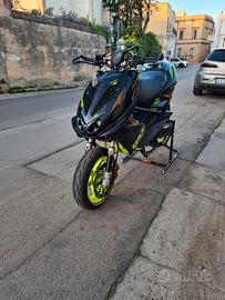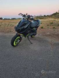 Vendo a malincuore Aerox Monta: Top viola, selettra team 2, carburatore 24 vhst, filtro dabol layer, pacco lamellare vl14, albero rhq sp10, marmitta pinasco power sound, trasmissione: correttori over range 128 in ferro, frizione delta, campana malossi auto ventilata, cinghia over range malossi, variatore 101. Monta un'impianto frenante rpg disco 280 con pinza rpm, disco di dietro maggiorato, pompanti adelin, strumentazione stage6, radiatori maggiorati gpi, tubi maggiorati, pompa dell'acqua stage6, 2 impianti elettrici fatti uno per il motore è l'altro per le luci con la batteria.