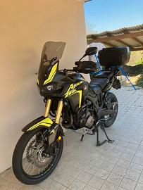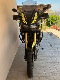 Eseguito tagliando dei 50.000 presso officina ufficiale Honda, sostituzione candele, trasmissione nuova, revisione pompa freno anteriore, gomme 100%, manopole riscaldabili, faretti addizioinali, modifica Bartubeless, cavalletto centrale, bauletto e attacchi borse laterali, bollo pagato 2/2026. La colorazione gialla è autoadesiva e si può togliere