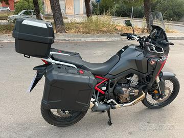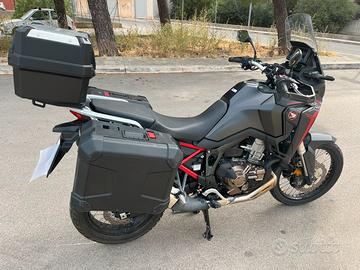 Honda CRF 1100 Africa Twin DCT 2020 con circa 25.000 Km originali, gomme nuove con circa 1000 km, sempre tagliandata in officina Honda, tagliandi dimostrabili con le copie delle fatture, scadenza revisione Maggio 2027, doppie chiavi originali, paramani, cupolino originale honda più cupolino alto honda, cavalletto centrale originale Honda, zero sinistri, sella confort, bauletto posteriorie da 35 Le laterali in piu bauletto 58 L apribile con la stessa chiave originale, antifurto meccanico blocca disco posteriore Block system. Vendo non scambio prezzo poco trattabile