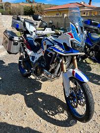 Moto perfetta in tutto con molti accessori ben visibili pronta per viaggiare