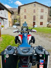 Vendo africa twin 1000 in ottime condizioni per passaggio a modello più recente. La moto è dotata di: -Telaio paramotore basso e alto -Pneumatici continental tkc70 70% -Valige laterali originali honda -Bauletto posteriore Givi 52l -Accessori vari come da foto (borse porta attrezzi, porta boraccia… ecc) -coppia di camere daria nuove di scorta. - portacellulare da manubrio con presa usb incorporata. - attacco rapido mantenitore batteria. Eseguito tagliando a 50000 km Sostituito candele a 27000km Sostituito kit trasmissione (carena corona pignone) Scadenza revisione giugno 26. Moto pronta all’uso. No offerte ridicole. Valuto scambi solo con ktm 1290 adventure