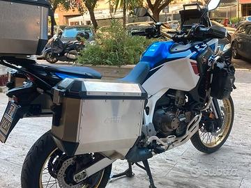 Tris Valigie in Alluminio, Cambio automatico DCT di serie,Schermo TFT a colori touch da 6.5" multifunzione, affiancato da un display LCD,Bluetooth, Apple CarPlay e Android Auto, Luci Full-LED, luci diurne DRL, e "cornering lights" progressive di serie,4 modalità preimpostate (Urban, Tour, Gravel, Off-Road) e 2 completamente personalizzabili (User),Piattaforma inerziale (IMU) a 6 assi che gestisce ABS cornering, controllo di trazione HSTC a 7 livelli e controllo dell'impennata a 3 livelli, Cruise Control, Parabrezza Regolabile e con ampia protezione aerodinamica, Manopole riscaldabili , Presa 12V e porta USB, Serbatoio 24,8 litri con elevata autonomia. Paracoppa maggiorato in alluminio, Paracarene Laterali e Frontali, Faretti Supplementari, Cerchi a raggi in alluminio, Etc.....