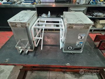 serbatoi aggiuntivi benzina da 5 lt. cadauno, borse laterali porta atrezzi e ricambi e valigie in alluminio, create su misura. portapacchi creato per le valigie. cerchi Did, dischi freno flottanti, pinze brembo, tubi freno aereonautici, batteria al gel