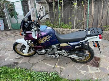 Africa twin RD07 del 1994 con 63000 km in perfetto stato di marcia. Come extra monta scarico leovince omologato, barre paramotore, cupolino alto e navigatore. Lo scarico ed il cupolino originali vengono dati con la moto. Pneumatici , trasmissione, pastiglie ant e post, candele e olio motore con mille km. Il trasparente del serbatoio è da rifare.