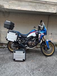 Vendo a malincuore per scarso utilizzo Honda Africa Twin Tricolor, immatricolata settembre 2019, con talaietti paramotore bassi, cavalletto centrale e paramani Barkbusters. La moto è in ottime condizioni, tranne una crepa ed un graffio sulla carena anteriore destra, come si vede dalle foto. Tris valige originali incluso nel prezzo + 1 gomma anteriore scorpione trail nuova. Prezzo trattabile nei limiti del difetto, niente offerte assurde a ribasso.