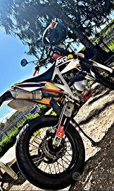 La moto gli manca il freno dietro, ma quello con pochissimo si fa. La moto prima si accendeva ora no, non si accende perché il meccanico ha toccato qualche filo che va male, saranno dei fili che non prendono bene. È l'ultimo problema e che perde olio ma la porto al meccanico per aggiustarla.Per info contattatemi . Non perditempo. La moto va benissimo. Marmitta non è omologata ma ho anche quella originale. Gomme fatte a agosto (enduro) la vendo a poco perché ho già un'altra moto.