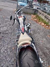 Chopper unico al mondo omologato a libretto svendo a metà prezzo vero affare con posteriore da 300 e anteriore 21 elenco : telaio penz performance con disegni e pinstreaping in foglia di argento primaria da 5 pollici cambio bdl 5 pollici motore S e s super stock molto potente e unico carburatore mikuni comandi performance machine cerchi ricavati dal pieno filtro aria a cono cromo freno e corona da un lato con cerchio libero batteria nuova ect la moto richiede sostituzione pastiglie freno posteriore, riparazione o sostituzione serbatoio (serbatoio molto curato con foglia di argento) ripresa di qualche cromature sulla testata posteriore. Moto molto bassa e lunga la cedo a chi sa cosa sta comprando via prego no perditempo la moto la cedo per inutilizzo, considero permuta con Harley Davidson Touring.prezzo molto competitivo.