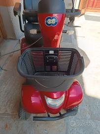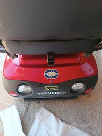 Vedesi Scooter Vermeiren elettrico per anziani o disabili modello CERES è dotato di un semplice comando manuale, paraurti sportivo per la sicurezza, due specchietti retrovisori, schienale regolabile e girevole e l'appoggiatesta regolabile, come anche la colonna di sterzo. Batteria appena sostituita