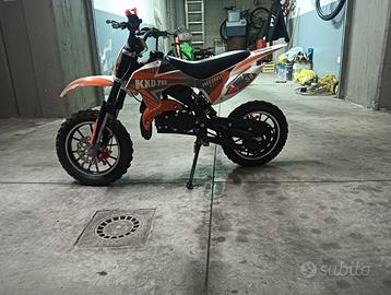 Vendo mini cross perfetta in ogni parte mai caduta usata solo in area privata, 50 cc benzina due tempi cerchi da 10 pollici non necessita di nulla, la vendo per passaggio a moto più grande.. Per qualsiasi informazione contatto telefonico 3473936787