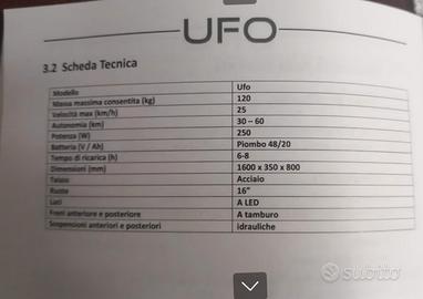 3 velocità differenti ( 6,12,25 km/h), sospensioni idrauliche, elettrofreno, ruote aggiuntive antiribaltamento, retromarcia con segnale acustico, porta bastone, antifurto con allarme e telecomando, 2 chiavi e 2 telecomandi, bauletto posteriore con chiave, vano bagagli sotto il sedile con chiave, completo di parabrezza.