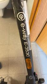 "Il monopattino elettrico E-Way 3530 percorre fino a 15 km con una persona di 85 kg. Tutto funziona perfettamente. In omaggio verrà inclusa una chiave Allen."