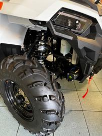 Offerta di fine Estate! 2 Polaris Sportman 570 EPS in pronta consegna: Bianco 570 EPS APACHE, Forest White listino 10.990 più immatricolazione scontato a 9.900 chiavi in mano; Nero 570 EPS BLACK EDITION, versione limited edition ONYX BLACK listino 11.990 più immatricolazione scontato a 10.900 chiavi in mano. Solo 2 esemplari in pronta consegna. Motore Polaris Prostar 567cc Omologazione Quadriciclo targa bianca 2 posti Trazione 2×4 4×4 e sbloccaggio differenziale posteriore Marce: avanti ridotta L, Avanti lunga H, P, N , Retromarcia R Sospensioni: Ant McPherson con 20,8 cm escursione / Post Doppio braccio con 24,1cm escursione Misure Lu 210,1 cm / La 121,2 cm / Al 145,4 cm; Altezza da terra 34 cm Altezza sella 90,1 cm Capacità serbatoio 17 litri Cerchi in lega da 14" Dotazioni di serie: verricello anteriore, servosterzo EPS, freno motore EBS, fari a LED, presa di ricarica batteria sul cruscotto Colore Onyx Black