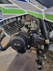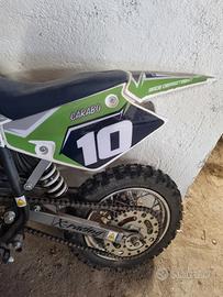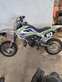 minicross acquistato nuovo e usato pochissimo,in questo momento è in configurazione con ruote da 10 ma è possibile acquistando direttamente dalla testi farlo 10 12 senza cambiare componenti oppure 12 14 sostituendo il forcellone posteriore,in poche parole può essere usato dai 5 anni in su senza dover sostituire la moto.