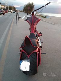 Chopper special. Telaio Penz rigido, forcella Kodlin, motore Revtech 1500, carburatore Mikuni, cambio BDL 5 marce il resto degli accessori Performance Machines tutto omologato, pneumatico posteriore 300 Cobra, anteriore 21 Cobre, verniciatura Zeus, chopper estremo per portarlo l'altezza minima dovrebbe essere 180cm costruzione totale 50.000 euro moto da esposizione per la sua bellezza e da selfi vendo solo per necessità per contatto chiamare al numero 3291175642 Renato 28.000 euro poco tratabili moto per omologata per due persone,