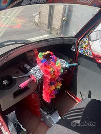 vendo ape 50 cross anno 2005 omologata 2 posti omologata con rool bar e bull bar 44 mila km originali MOTORE il motore è stato rifatto completamente da me l’anno scorso a giugnio circa 130 dr leggermente lavorato lamellare polini con collettore artigianale 24 dell’orto filtro aria stage 6 albero jasil anticipato corsa lunga marmitta leovince pignone da 22 denti frizione rinforzata new fream 7 molle cambio originale accensione originale con volano palette lunghe cuscinetti e paraoli nuovi carter leggermente lavorati ESTERNI gomme 130/70/10 continental 70% di vita gomma anteriore da sostituire tamburo anteriore da sostiture anche quello freno anteriore nuovo freni posteriori nuovi compresi di pompa nuova fatti 1 anno fa entrambe le sponde del cassone sono state riverniciate esternamente 2 mesi fa da me in carrozzeria dove lavoro stiker bomb bianchi e neri sul tetto alettone racing 2 fanalini sopra al parafango specchietti uno turbo LA BARRA A LED SOTTO AL PARAFANGO NON È COMPRESA CON L’APE INTERNI stereo jvc 4 casse pjoneer 2 sotto al sedile e 2 sul pianale sotto al manubrio 4 bottoni aggiuntivi interni rinfoderati di lana nera prezzo trattabile vista e piaciuta