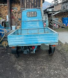 Vendo come da titolo ape 50 del 1982 monta un motore da 90cc; appena fatta revisione del motore, revisione forcella anteriore, sostituzione copertoni con relative camere d aria,cambio cordino acceleratore e frizione, cambio pistoncino pedale del freno, sistemazione impianto luci e aggiunta supporto per la ruota di scorta sotto al cassone nel posto originale.