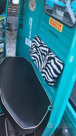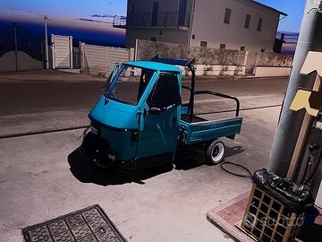 L'ape è allestita internamente con tappezzeria zebrata , sella imbottita e rivestita da tappezzeria, impianto audio e stereo fatto su misura , batteria maggiorata 60 ampere .