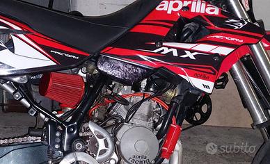 Aprilia mx 125 2004 Motore rotax122 56h con lavorazione interna e pacco lamellare decidato Carburatore 34mm dell'orto Filtro da gara greddy Pancia artigianale da preparatori da montare Alleggerimento completo Impianto frenante anteriore 320mm con revisione completa e tubi in treccia da montare Pneumatici 80% Leve ,pedane e puntale freno posteriore in Ergal da montare Copriforcellone Copriforcella anteriore in carbonio da montare Sospensioni revisionate e tarate Rapporti motard nuovi Prezzo leggermente trattabile Scambio con auto o motard 450cc
