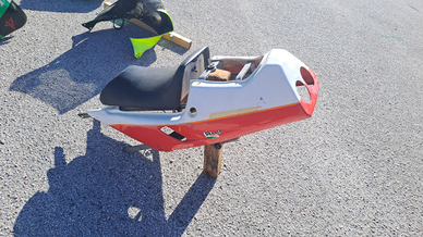 Vendo Aprilia AF1 Sintesi Sport 1989 Modello Reggiani replica, la moto dispone delle sue carene, cupolino, telaietto, codone, serbatoio originali come da foto, in più monta carene ,codone e telaietto della AF1 sintesi Futura , in ricambio altro codone Sintesi , manca serbatoio Sintesi e Carburatore moto da revisionare si vende formula vista e piaciuta ( la moto a girato in pista 10 anni fa). I documenti con targa sono stati riconsegnati PRA.