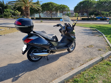 Dotata di: motore 4 tempi a benzina, capacità serbatoio carburante lt. 10, avviamento elettrico, freni anteriore e posteriore a disco, batteria al litio, cassetto porta oggetti anteriore, ampio vano sotto sella, ampio bauletto posteriore.