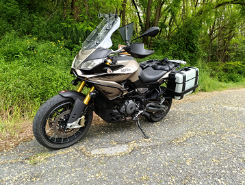 TC su 3 livelli, ABS escludibile, sospensioni con regolazione del precarico elettronico su 5 modalità, manopole riscaldate, faretti led, valigie laterali.