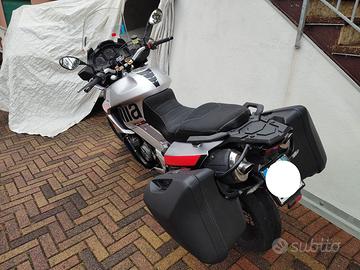 Vendo Aprilia Caponord ETV 1000 del 2001 che seppur con qualche Km alle spalle ha ancora tanto da offrire, pronta per partire ed affrontare qualsiasi tipo di viaggio. Appena eseguito tagliando completo in occasione dei 70000 Km (olio con filtri vari, olio pompa freni, frizione e candele), risolti i consueti problemi dell'impianto elettrico, ammortizzatori revisionati, manubrio maggiorato (ma dispongo anche dell'originale), parabrezza Givi, bauletti originali Aprilia e altre migliorie.