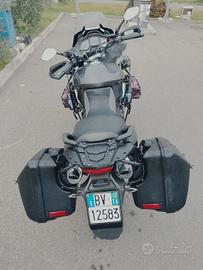 vendo splendida Caponord, affidabile compagna di ogni genere di viaggio, più unica che rara, data la verniciatura goffrata sui paraurti, valigie laterali originali e molto capienti, e su tutta la struttura fatta apposta per protezione faro, carena e motore, dove sono anche attaccate 2 valigette porta attrezzi molto comode e 4 fari supplementari che insieme alle lampade led sul suo faro fanno luce a giorno, è installata una doppia presa USB per caricare il cellulare con indicatore di carica della batteria, la sella è stata rifatta da poco, gomme 80%, manopole riscaldate, i km sono quelli in foto 22.000, il tagliando andrà fatto a 25.000, cosa dire di più, provare per credere, personalmente, con meccanico, quando volete. P. S. l'impianto elettrico è stato rifatto, in virtù della sua originale problematica, in dotazione una doppia sella più alta con rivestimento particolare. Le foto comunque parlano da sole se ho dimenticato qualcosa.