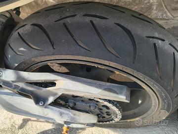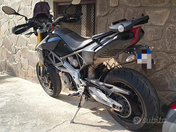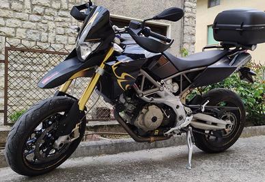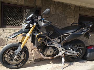 Aprilia Dorsoduro 750 Factory. sempre Originale. Colorazione Nero/Oro. Motard premium caratterizzata da un motore bicilindrico da 92 CV, ciclistica affinata con sospensioni regolabili e tre mappature motore (Sport, Touring, Rain). Splendida: Leggera, maneggevole, sprintosa, super reattiva e divertente. Aggiunto Cuppolino after market per protezione aria e porta bauletto con maniglie per passeggero. Sempre tenuta in garage. Revisione fino a 2027. Mai avuto un problema. Cambiato catena corona e pignone un anno e mezzo fa. Copertone dietro: nuovo.