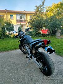 Moto immatricolata nel 2009, depotenziata, guidabile con patente A2. Presenta varie modifiche, anche estetiche, tra cui i terminali roads, omologati per circolare su strada. Consegno anche terminale originale. Attualmente ha poco più di 56000 km. Sono stati eseguiti molti lavori in officina, in particolare: regolazione acceleratore elettronico, nuova batteria, sostituzione dell'intero corpo farfallato (compresi i relativi sensori), guarnizione coperchio testa, cuscinetti base sterzo. Vendo per cambio tipologia