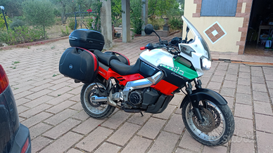 Vendo Aprilia ETV 1000 Caponord in splendide condizioni con gomme nuove, batteria maggiorata nuova, parabrezza alto nuovo, comando frizione revisionato, tagliandata con scadenza revisione 04-2027. Tris di valige givi, doppia chiave.
